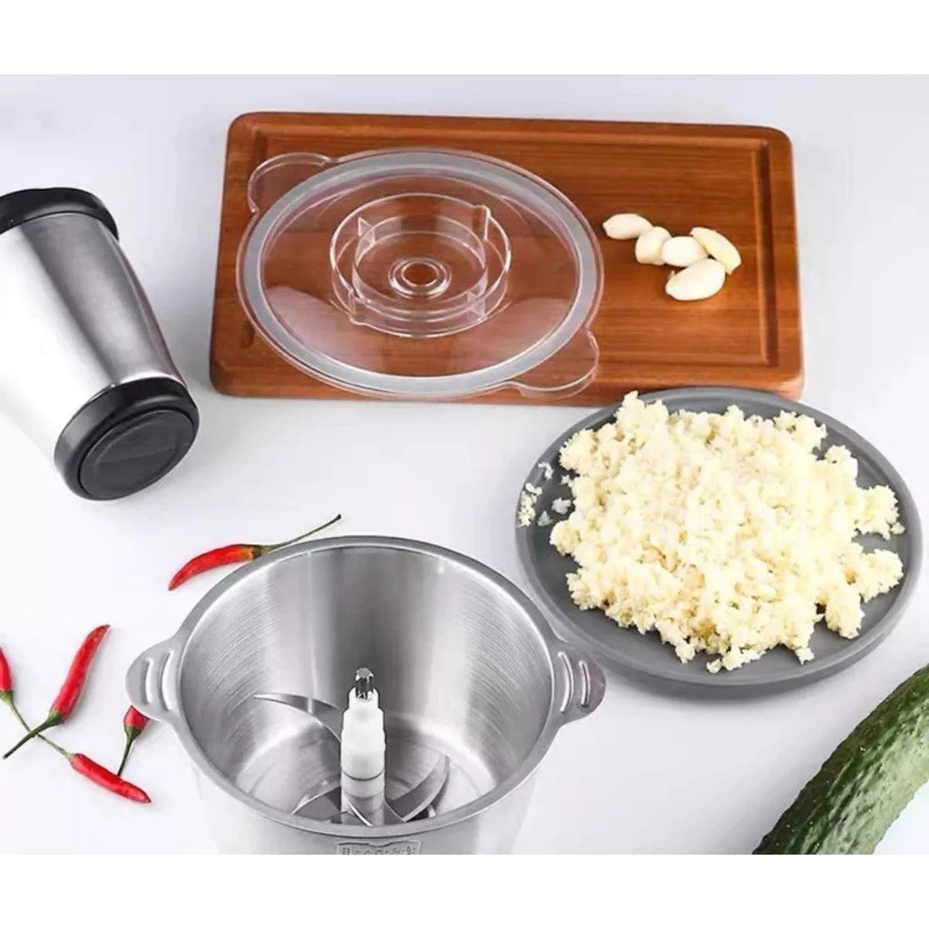 Este triturador e moedor profissional de alimentos de 300W é capaz de picar e moer carnes, vegetais, frutas, nozes e muito mais em segundos.